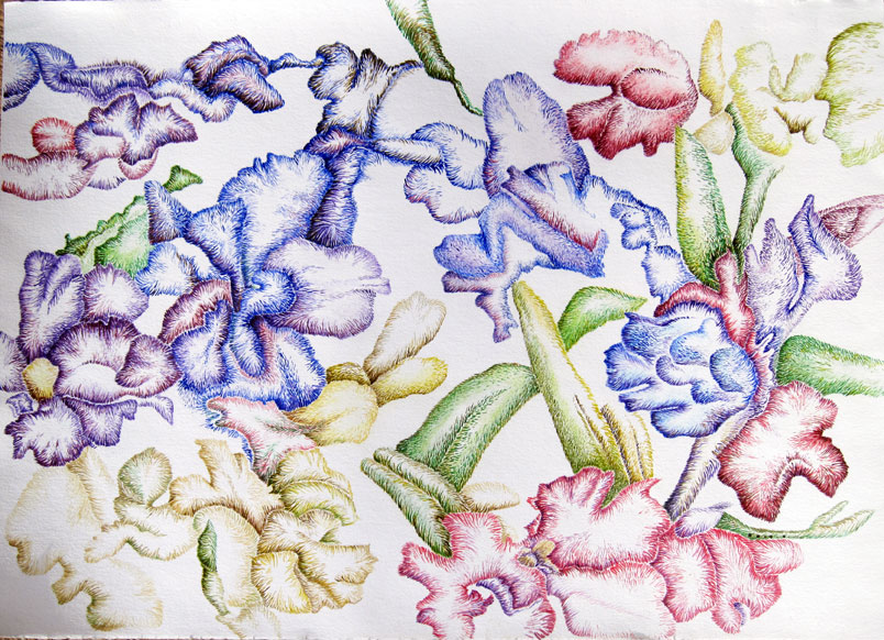 Poppy – I just rescued this comment from spam, sorry for not responding earlier! I do hope there aren’t other ones that have been eliminated. It does have an embroidered feel doesn’t it? Using small strokes was a nice slow way to build up forms, and let the imagery take on a life of its own.