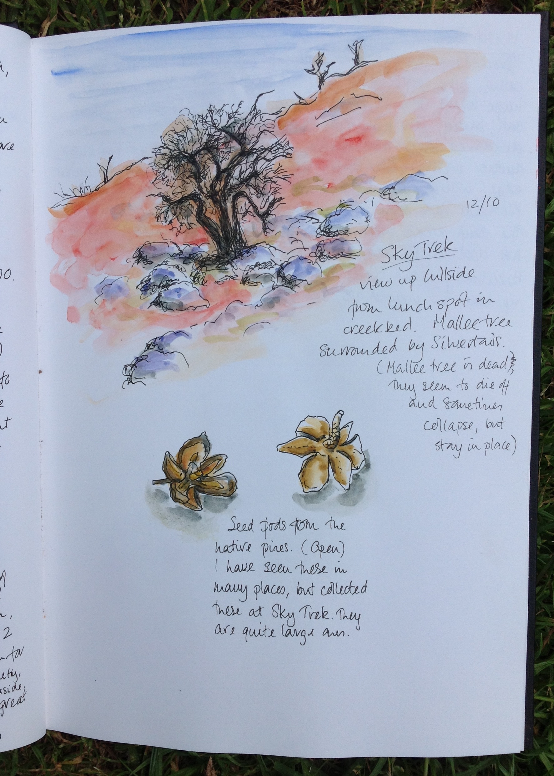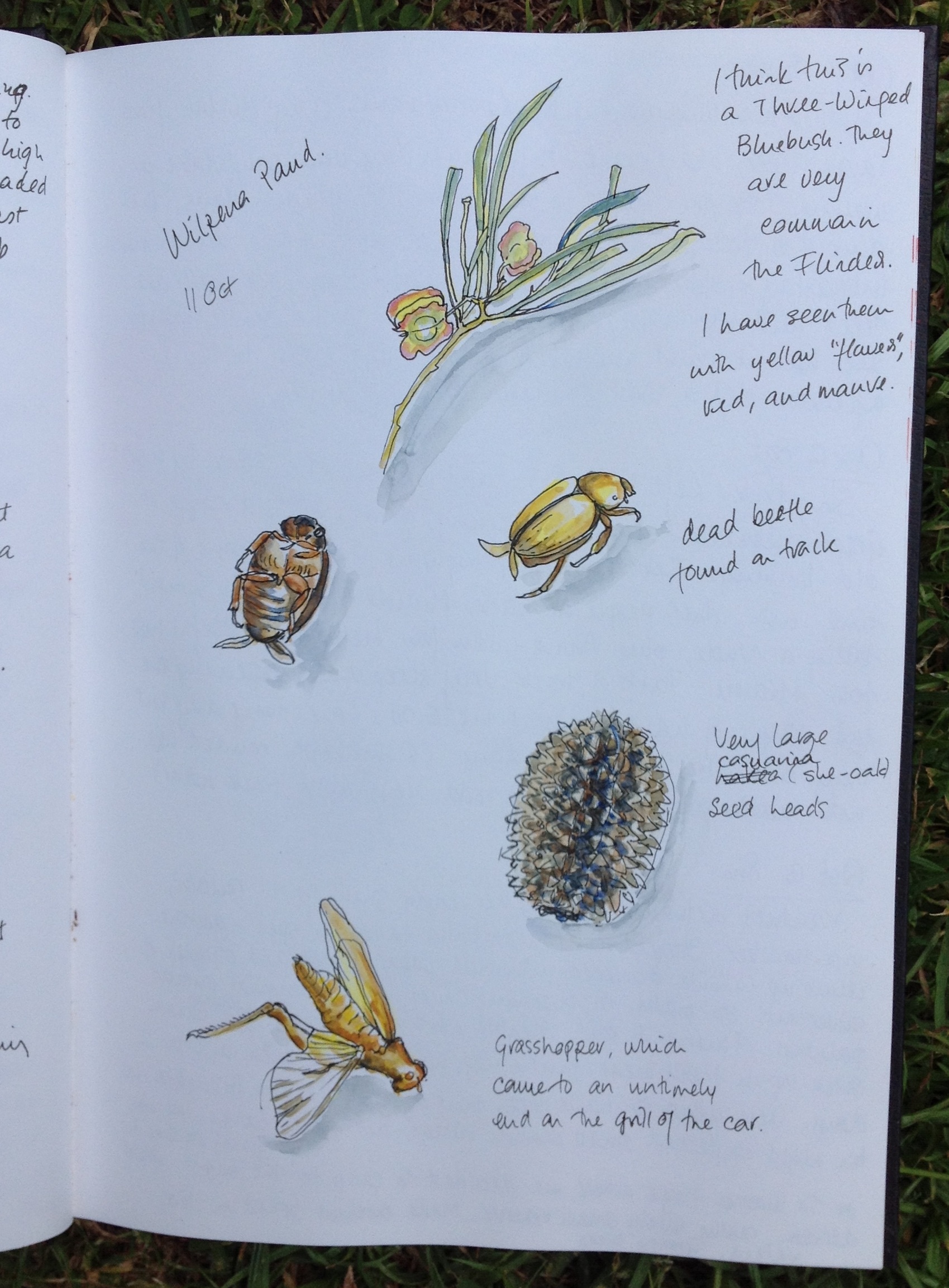 Sydney is going to seem awfully foreign and people-filled after this trip. A long spell in such remote surroundings must surely make one’s senses more acute and sensitive. I imagine it is so quiet too. I can see from your drawings and notes what joy you take from observing this wild world of remote Australia.