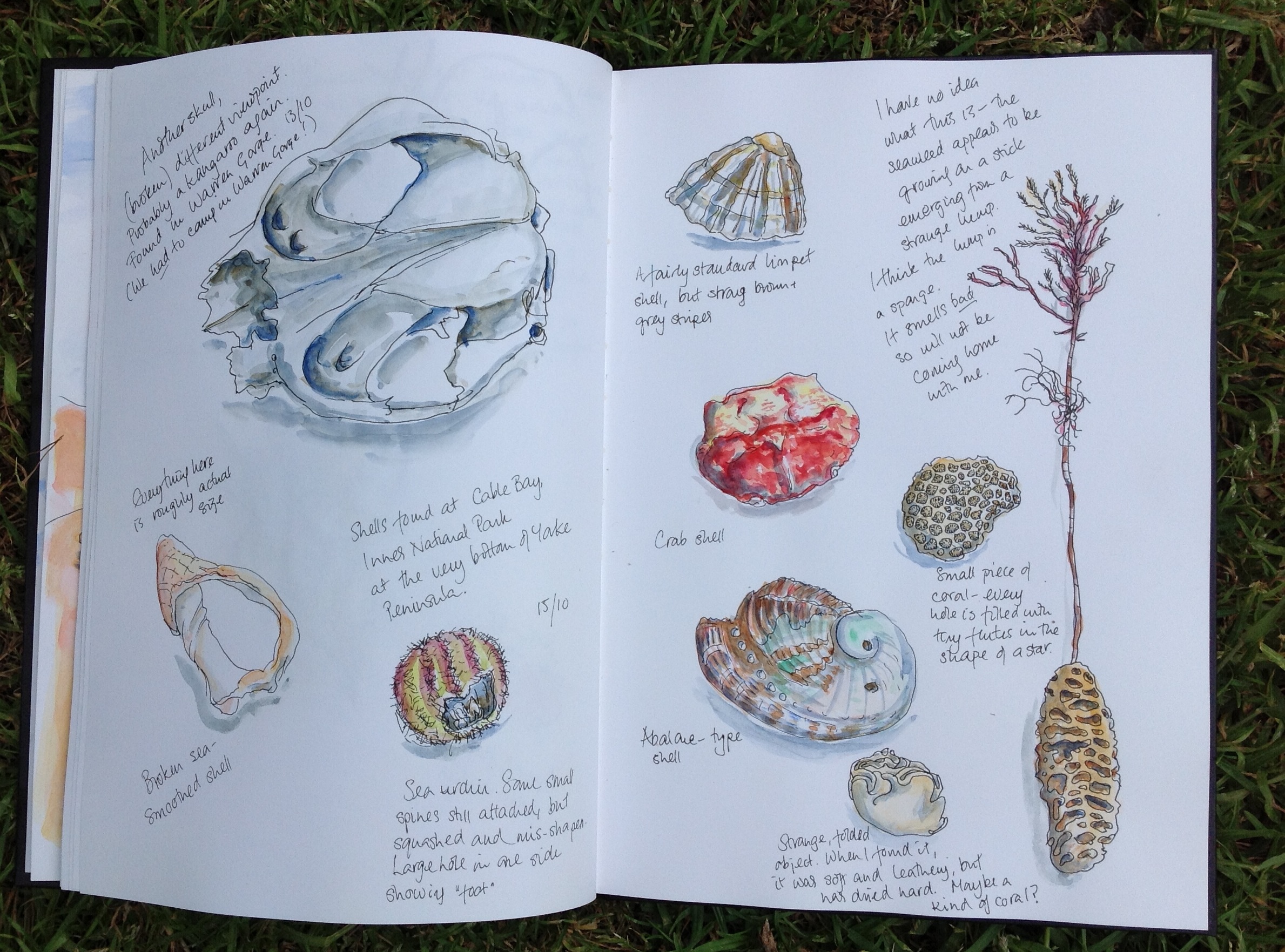 I really love the shells! Inspiring sketchbook pages, Anna. You are good for fellow creatives to get out there and draw!