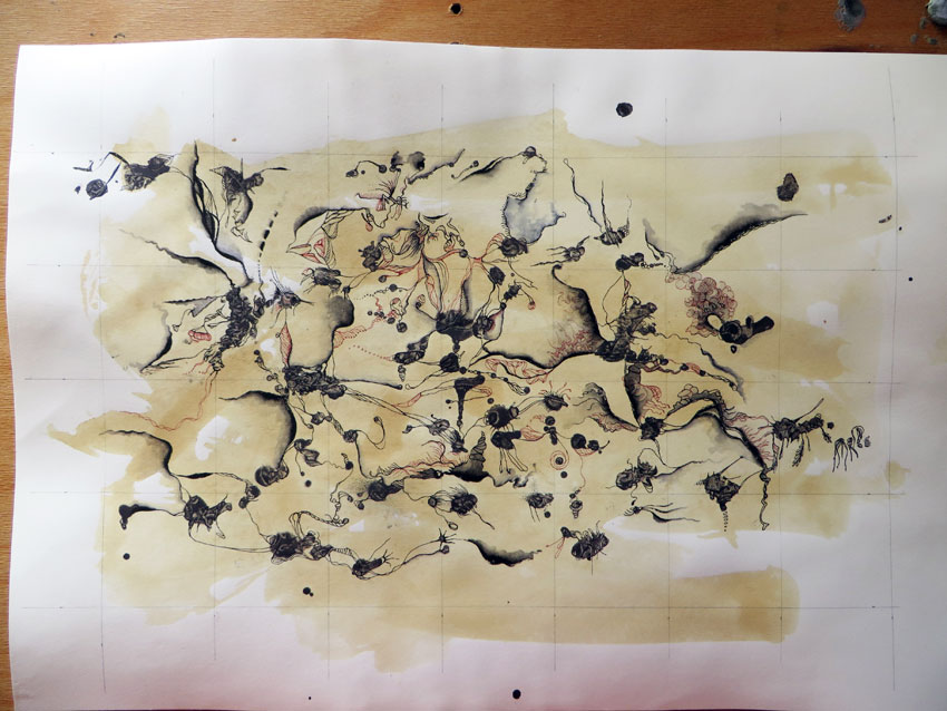 3. Really nice work! It reminded me of an artist (whose name I can’t remember unfortunately) who made these kind of abstract drawings in those Japanese foldable Moleskine notebooks. Very sensitive drawings! (I do have pictures, if you’re interested…)