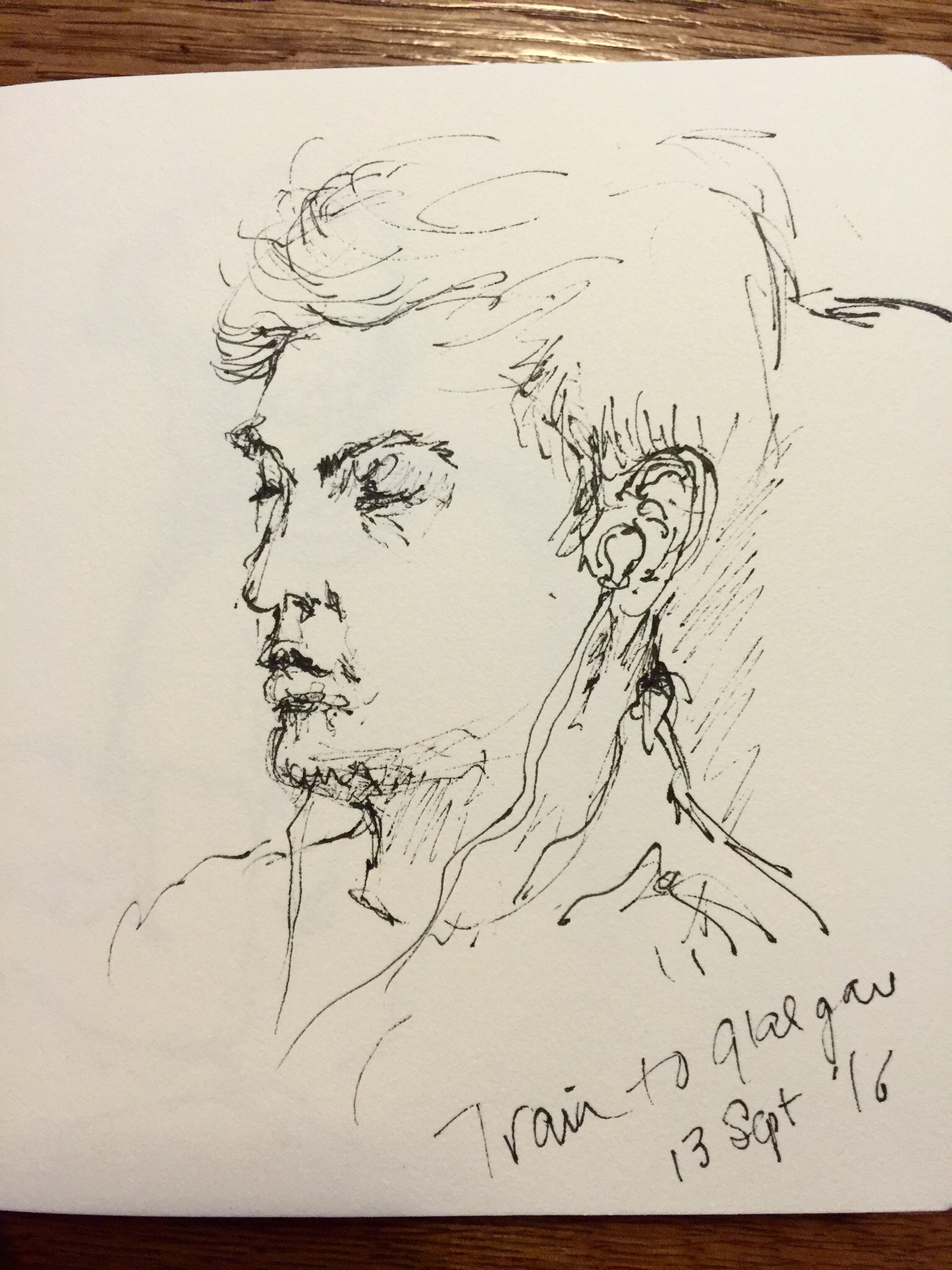 I’m as careful as I can be, but yes, I feel guilty too if someone catches me, and I stop if I think they are looking annoyed. The window reflection is a great idea Anne, you could be drawing the landscape! I think I will borrow that one … And I do like the idea of a ‘sketch service’ that legitimises it. My husband suggested I offer the first one (man with ponytail) to him as he felt it was a good likeness, but I’m not game to do that!