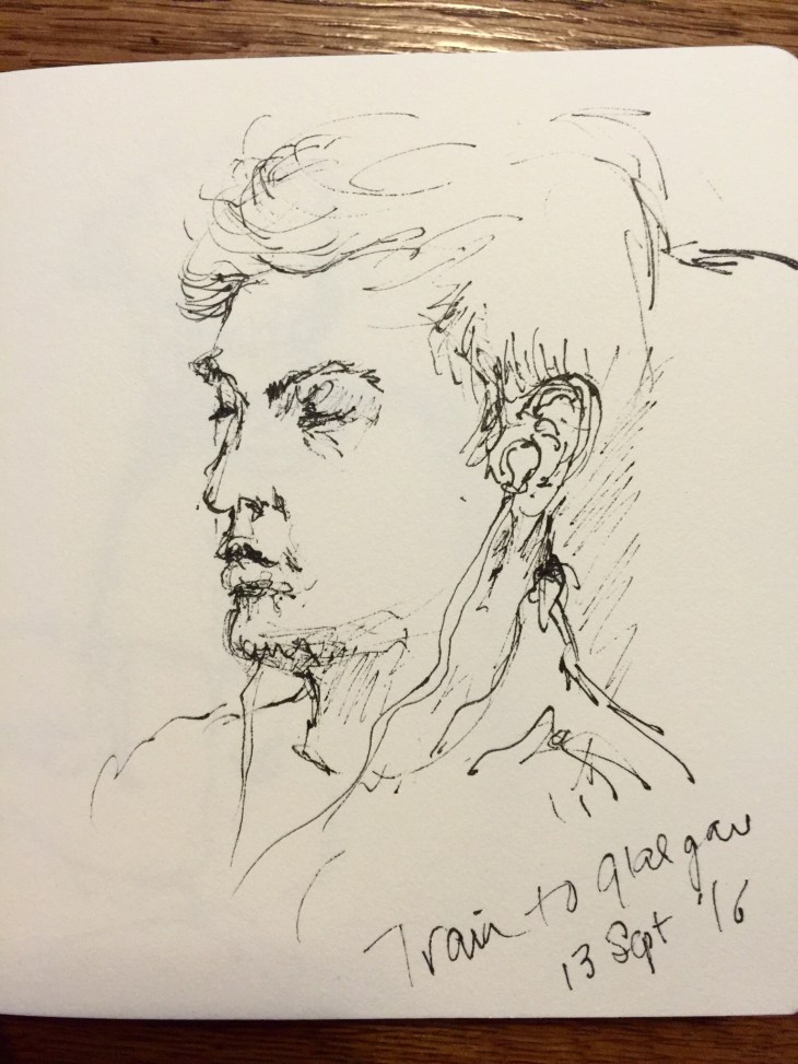 You’re very brave to do this! I like to scrutinise people using their reflection in the window as I feel less guilty when they catch my eye. Maybe the rail companies should offer a “sketch” service where artists sketch portraits to sell to travellers 🙂