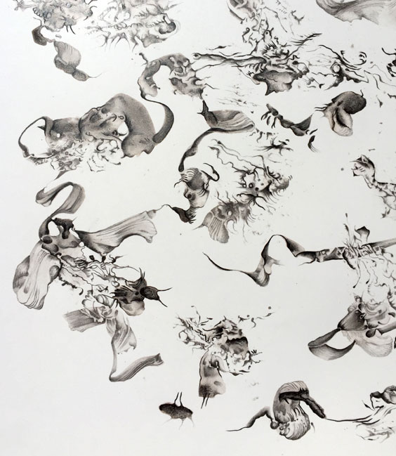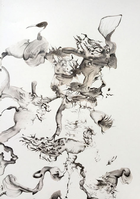 2. To me this drawing looks influenced by the dry specimens you observed and drew on your recent inland trip. I sense the presence of insects’ wings and discarded skins, every mark is so light, almost translucent and fly-away. I feel that if I blew across the page the marks would blow away right off the paper. Exquisite!
