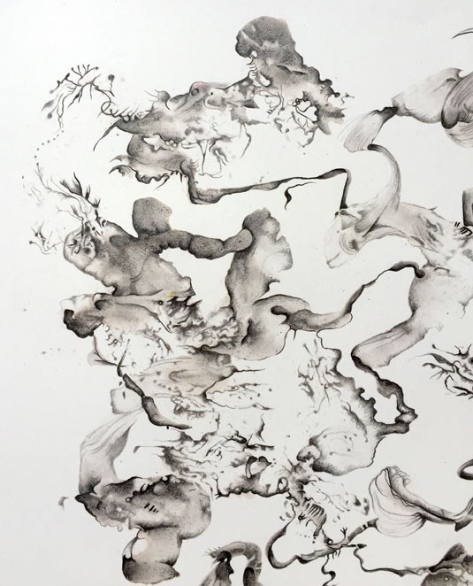 One drawing leads to another – this one followed on from ‘In Flight’ (see here for images and background). Once again using Liquid Pencil loosely and almost randomly applied as a base, on yupo paper, then the forms are worked into and developed using different kinds of pencils.