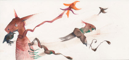 Completing the pieces requires much more time and thought than starting, and sometimes I have to sit and think for a little while before I begin. Some changed character as I was working on them as suddenly new shapes appeared and suggested a different direction. One of the things I particularly enjoy is the surprises we get, creatures emerged that I had no idea were in there.