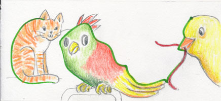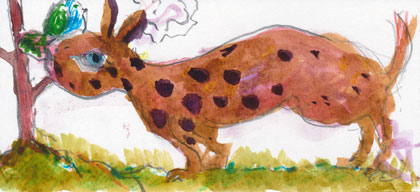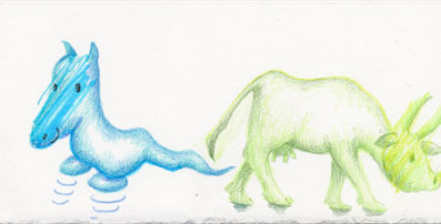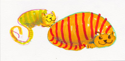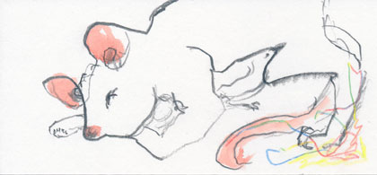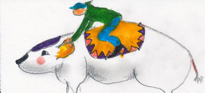 1. It has been (and continues to be!) fun, and challenging too. Often I receive one of Pat’s squiggles and have to leave it on my desk for a while till something jumps out at me, and I know it is the same for her. The pig jockey is one of Pat’s and it’s one of my favourites too. I don’t know if you saw my earlier posts on this collaboration, but Pat is legally blind, she does have some sight but not not like you or me. she has a lifetime of art making that informs what she does. I am constantly impressed by her inventiveness, imagination and skill.