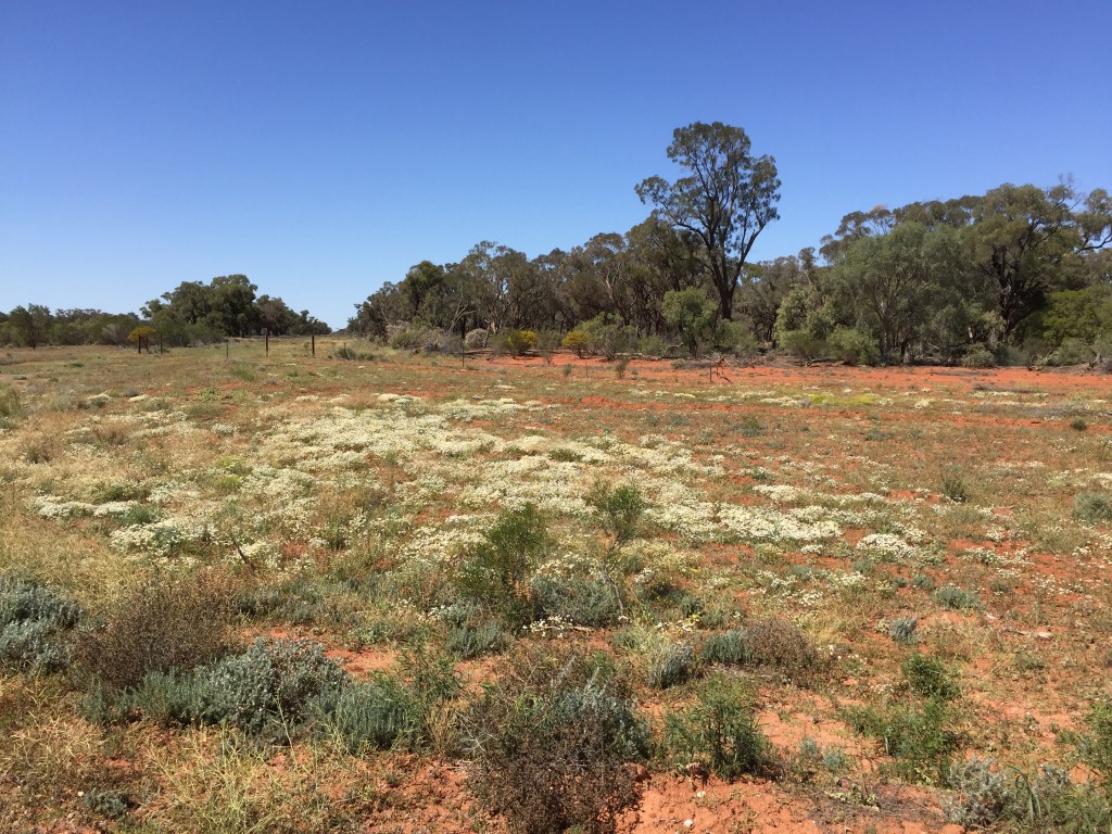 The geographic details and sketches I did on this trip were documented in my last post (see here) so I won’t say more about the route, but captions on the photos should explain where we were. It was an amazing trip, diverse and far reaching. We drove 3800 km and had cold weather, hot, flash floods, intense arrays of wildflowers, the Darling River flowing — all of which served to remind us there is so much to see in NSW.