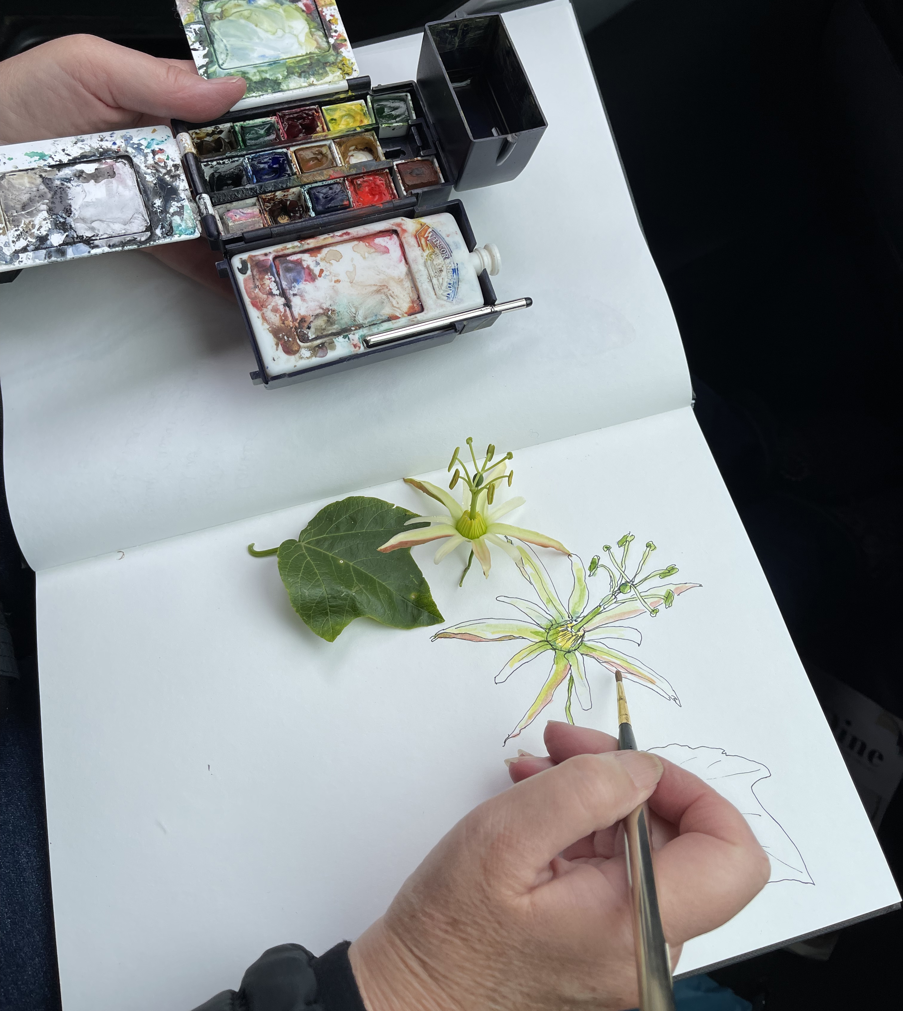 You know how your plant observations can morph into menacing Anna Warren creations? Well, in my mind it is but a short step from the original passionfruit flower in the photos to frightening triffid-sort of plant creatures via your hand. They are already such peculiar plants; beautiful and delicate but a little spider-like as well. A bit of visual science fiction and we’ll see what you come up with.