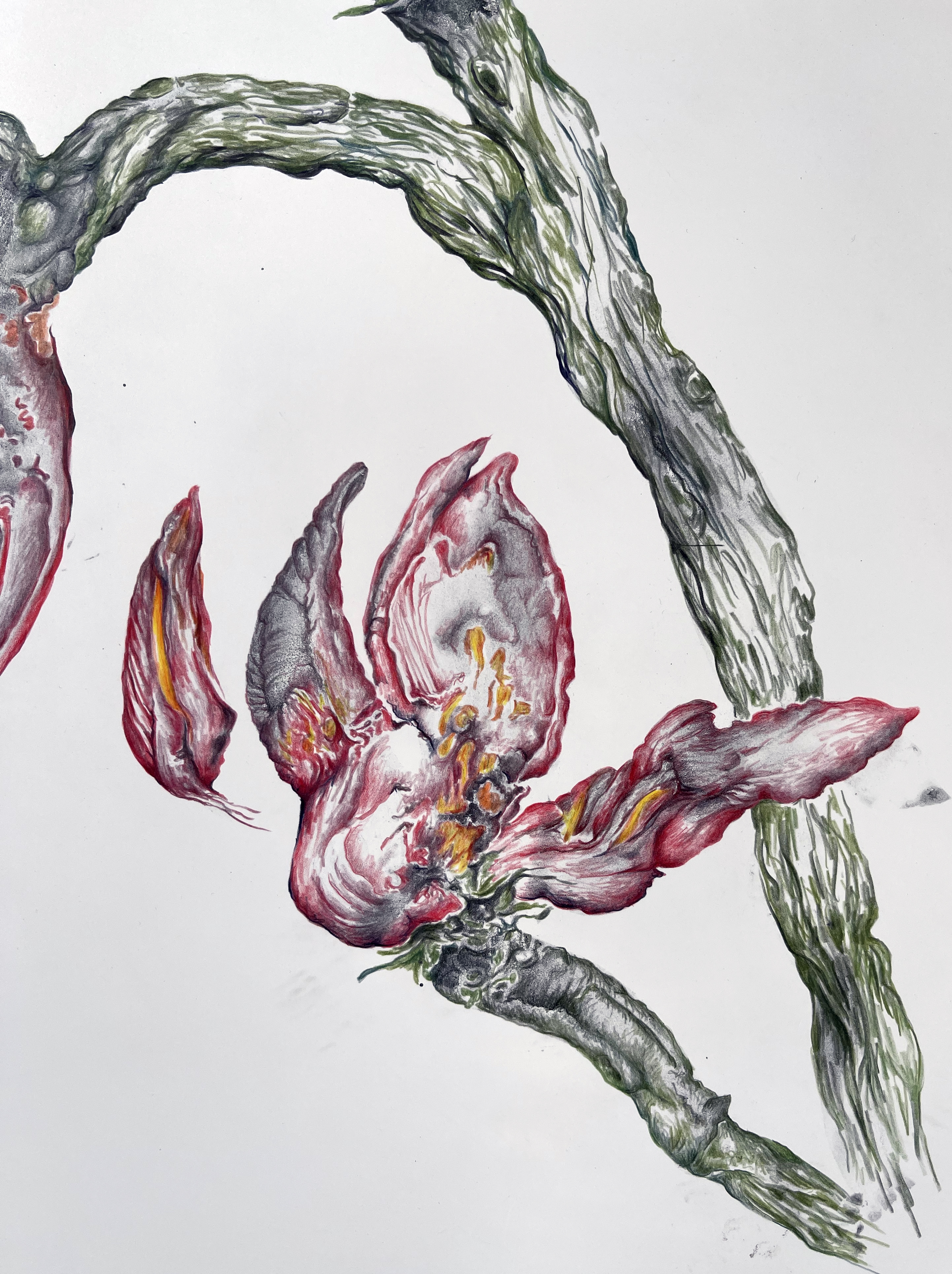 So interesting – your comment reflects very closely the artist statement I wrote when submitting my previous drawing (Seedhead) to an art competition. I do see most of my drawings making a commentary on the future, the terrifying form of nature that may emerge if we don’t look to protecting the earth from the juggernaut that is flying towards us in the form of climate change. I like the terms you use, ‘armour-plated’ and ‘impenetrable’. There is a brutal strength in there!